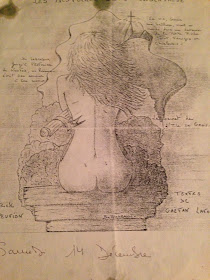 À la fin des trois histoires et de cette soirée mémorable de ma vie, de ces derniers 25 ans, que je célèbre en 16, je vous reproduit ce que les 3 artistes et le conteur nous ont écris au dos d'un napperon de table et nous à remis à la fêté.  Il y avait une telle énergie de ce soir là entre nous 4 et eux 3, c'était magnifique, tout autant que ce vent dehors qui faisait respirer l'air.   J'ai recopier au verso de l'affiche originale ce qu'Elsa avec eu au dos du napperon.   Je suis heureux de le partager avec presque 20 ans plus tard: